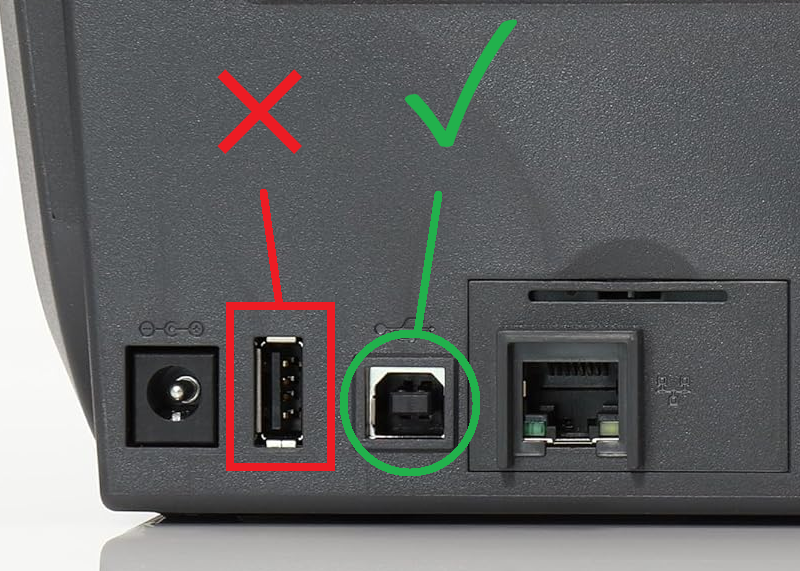 Vær opmærksom på at korrekte USB port til konfiguration (USB-B type) kan være gemt bag et lille klistermærke som infomere omkring at downloade driver